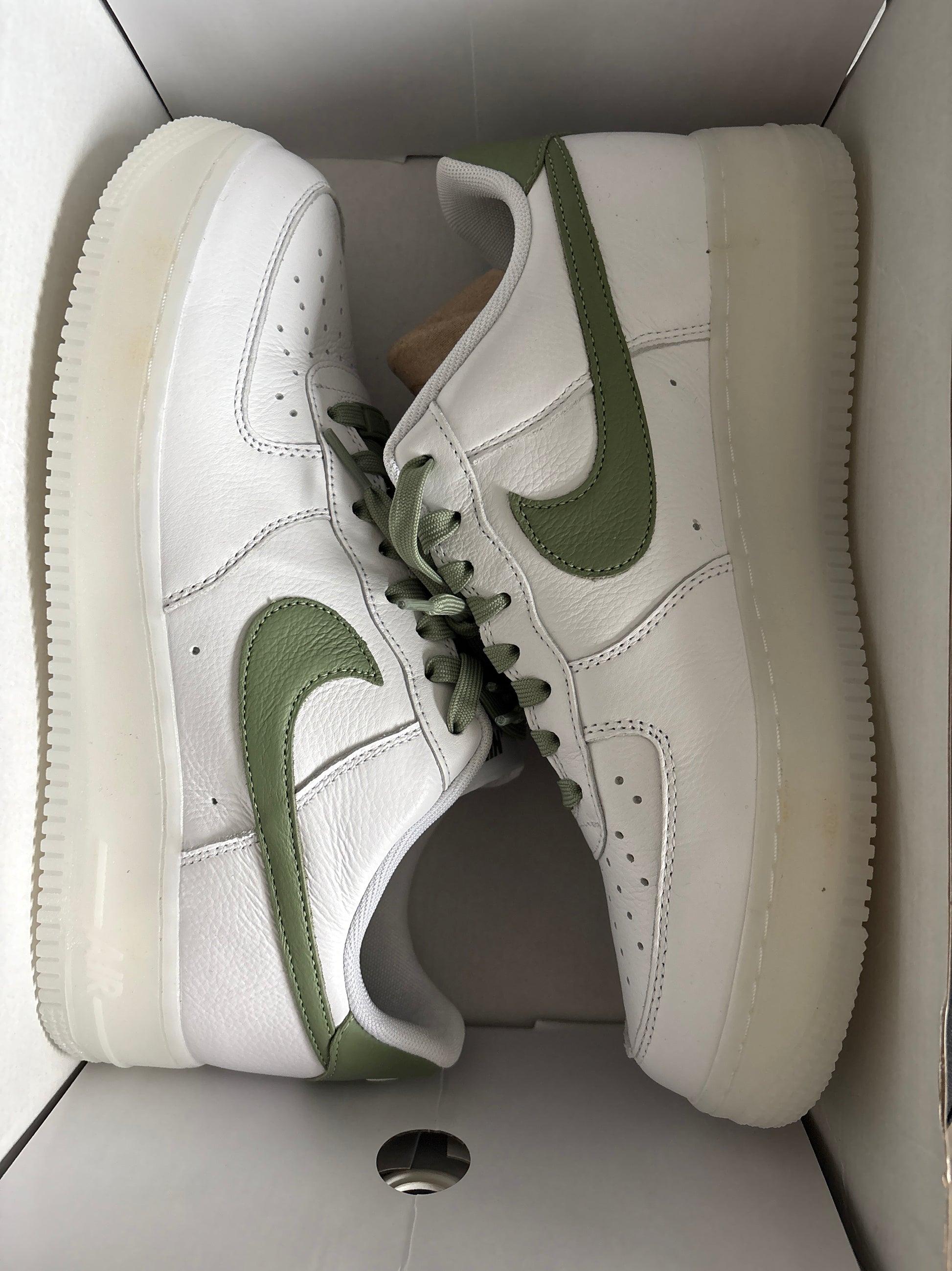 Nike Air Force 1 in weiss/grün mit grünen Schnürsenkeln, Größe 44