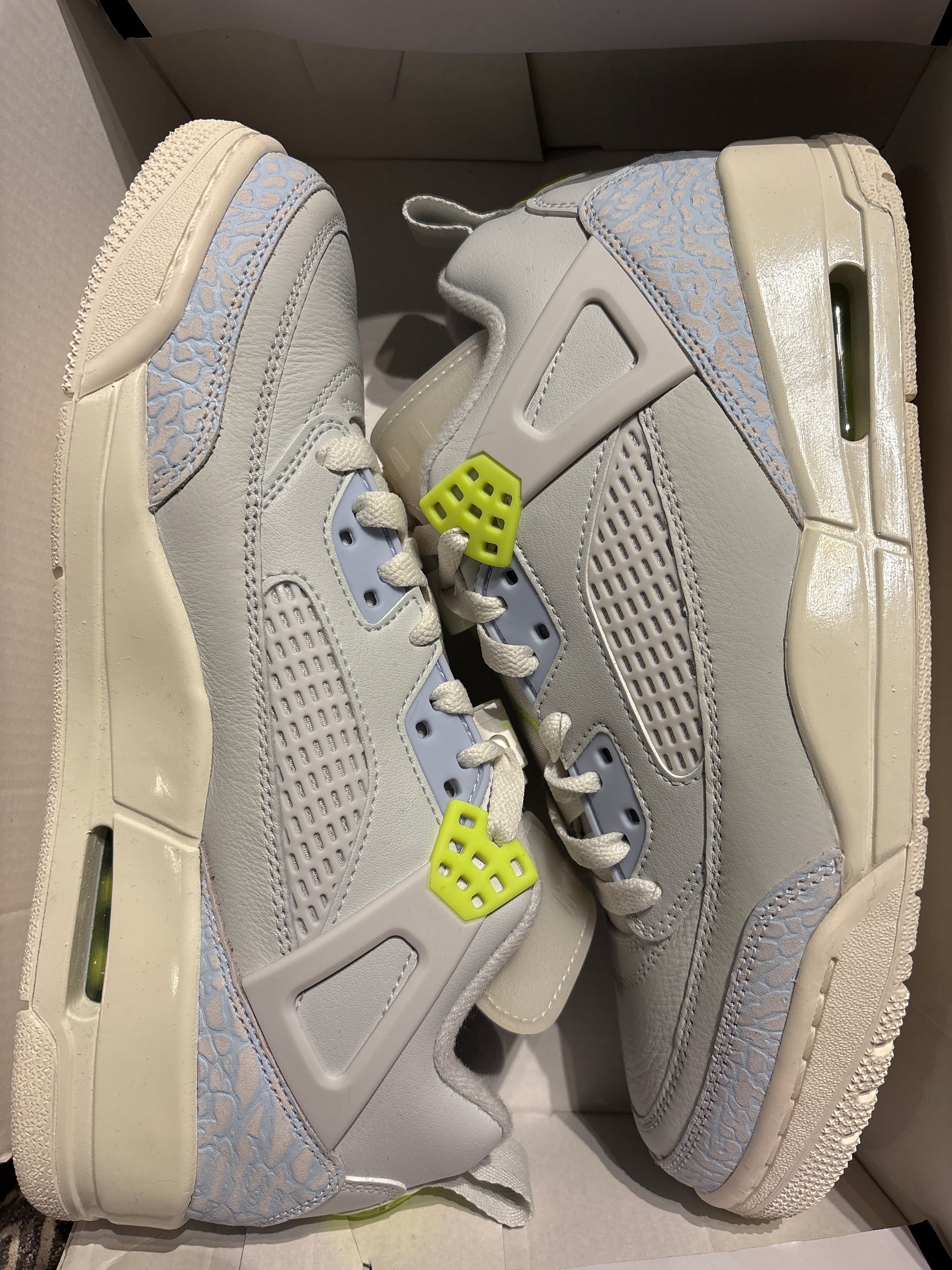 Nagelneuer Nike Jordan Spizike Low, in hellblau/grau/neongelb, Größe wählbar. 100% originale Nike Ware.